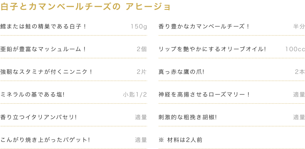 カップルが熱い夜を過ごせるような食材=耽美な白子を主役にした。一緒に白子をつつく仲になれば、関係もねっとり急接近するんじゃないか?