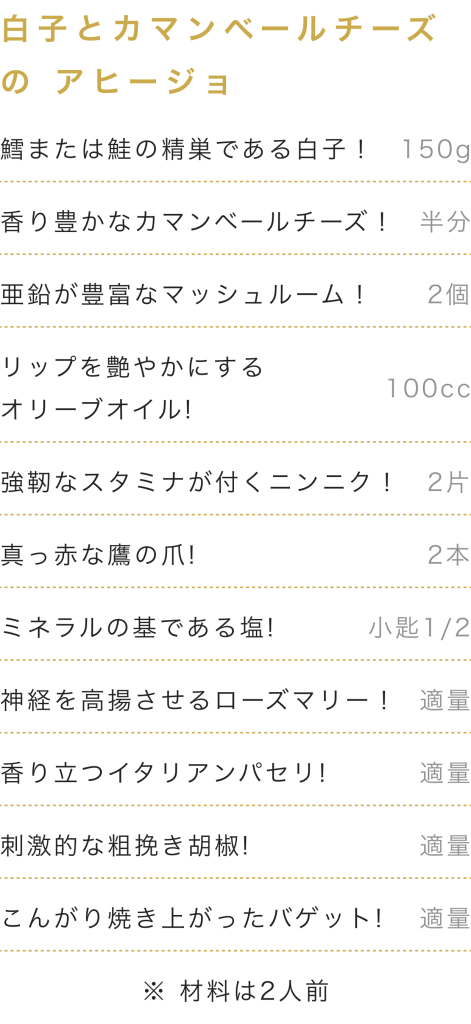 腹が減っては愛し合えぬ! ぜひ俺のレシピで盛り上がってくれよ!